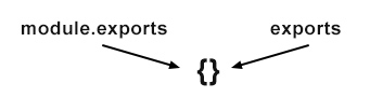 Na zewnątrz pliku zawsze wystawiany jest domyślnie pusty obiekt, na który wskazuje właściwość module.exports. Możemy tutaj także użyć skróconego zapisu exports, która to zmienna wskazuje na ten sam obiekt (ostatni przykład w powyższym kodzie).
